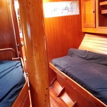 A partire dallo scafo con alcuni rattoppi in zone critiche, sulla coperta, con la sistemazioni di tutte le parti lignee ( falchetta, osteriggi, boccaporti ), e poi l'armo e soprattutto l'alberatura.