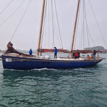 Il Grand Bleu nasce presso il cantiere Zennaro di Venezia nel 1986, in costruzione gemella con l'altro scafo del Chiaretta. LA barca ha navigato per anni in tirreno e ionio, per poi arrivare a Chioggia dove ha stazionato negli ultimi 10 anni facendo parte dell'associazione dei Venturieri.