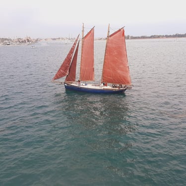 Il Grand Bleu fa parte della famiglia delle barche progettate da Carlo Sciarrelli, in particolare è il progetto N. 93, è una delle realizzazioni più affascinanti del celebre architetto navale italiano, noto per aver disegnato numerose imbarcazioni a vela caratterizzate da un equilibrio tra tradizione e funzionalità. Il N. 93 è un schooner aurico lungo circa 16 metri, costruito con scafo in acciaio e linea d’acqua ispirata ai grandi velieri classici ma adattata alle esigenze moderne, soprattutto per la crociera comoda e sicura anche con equipaggi non professionisti. Il primo scafo divenuto famosissimo nel Mediterraneo e nei Caraibi dove ha navigato per 20 anni, è stato commissionato da Giancarlo Toso e realizzato nel 1984 dal cantiere Zennaro di Venezia, scafo e coperta in acciaio. Il concept che Toso aveva chiesto a Sciarrelli era una barca comoda, veloce, economica nella costruzione e manutenzione, per fare scuola e charter. La barca con questo armo aurico, con albero e vele disposte in maniera tradizionale, conferisce al progetto un aspetto elegante e tempi di navigazione gradevoli, uniti a una gestione della vela efficace e semplice. Gli interni, studiati per il comfort, comprendono diverse cabine, servizi e spazi abitativi che lo rendono adatto a crociere di più giorni. La barca è stata realizzata su ordine di armatori attenti alla qualità nautica e storica, e molte unità basate su questo progetto continuano a navigare nel Mediterraneo